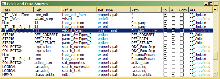 Sometimes, it becomes necessary to list all field definitions, e.g. in order to rename a data source, because a property name has been changed. Since it time consuming going through all GUI classes, their field controls and their field definitions, a field and data source list has been provided, which lists a summary for all field definitions.
