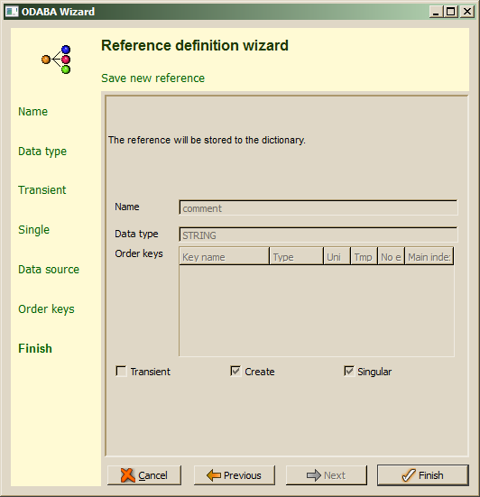 After confirming the wizard action with Finish, changes made on the current data type (and on its base type) are stored to the resource database.