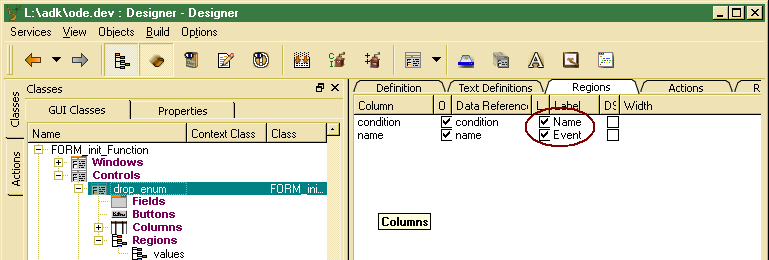 In order to define list columns for the drop list, a column list has to be defined in the control definition. The default combo box controls do not define columns and show single column key values in the list. In order to display data different from the default order key, one or more columns might be defined.