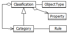 In general, categories are classifications, i.e. a category may consist of a number of sub categories, which allow further division of object collections. When the category's classification refers to a type (typed category), it may define an object collection containing a set of specialized object instances.