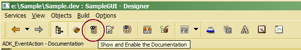 GUI resource documentation may be provided for all GUI resources that can be selected in the class or action tree of the Designer. In contrast to usage hints provided within the text definition for GUI resources (ADK_Resource), documentation provides additional conceptual description for a GUI resource.